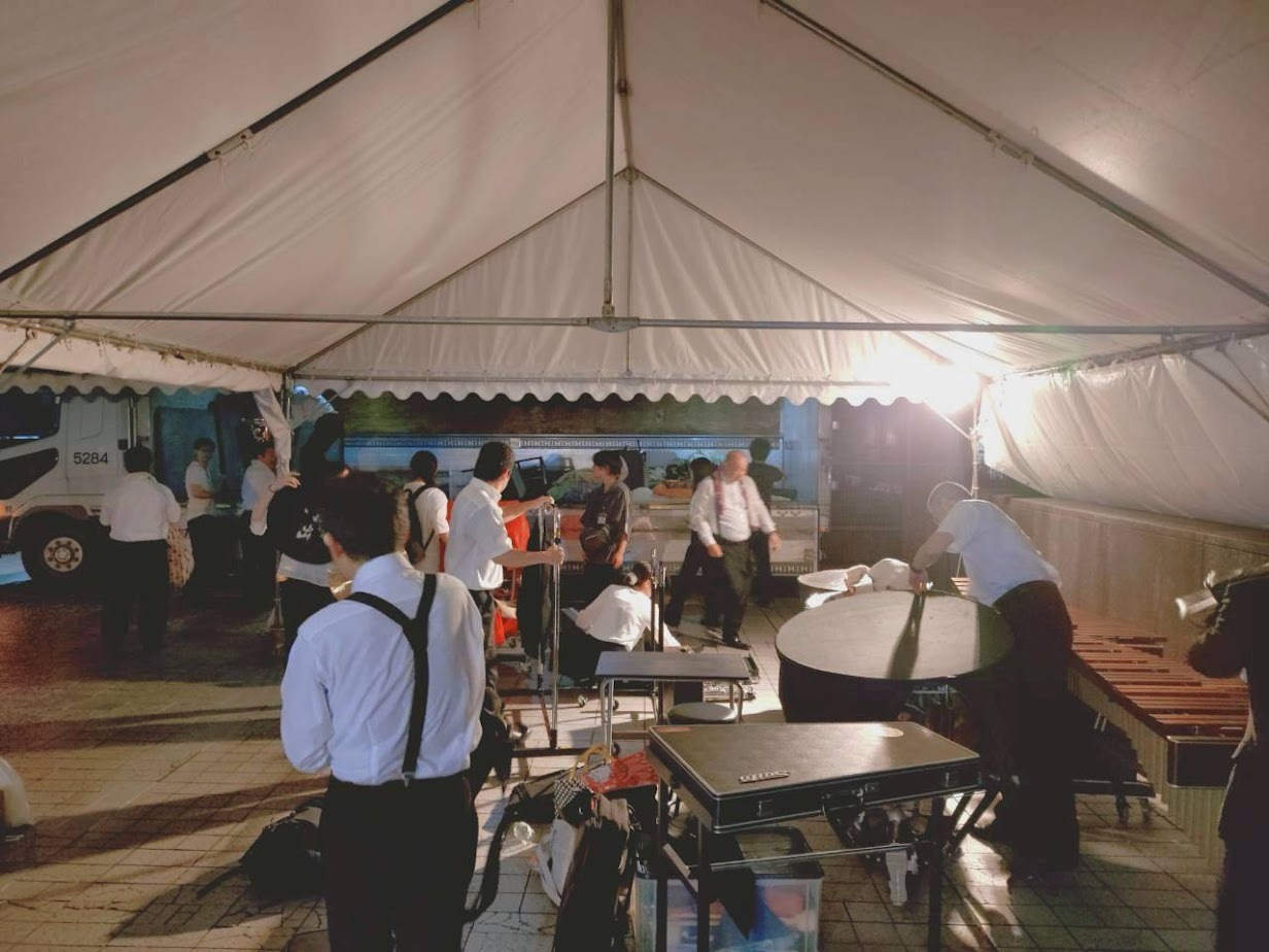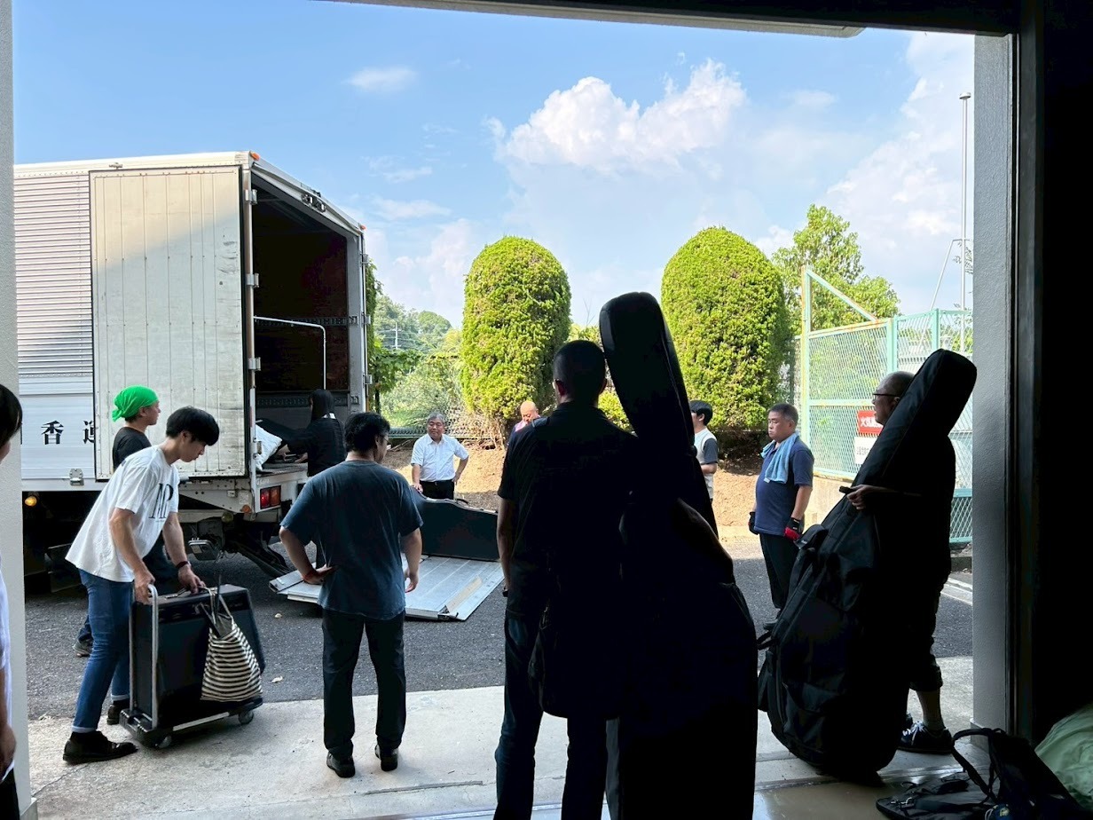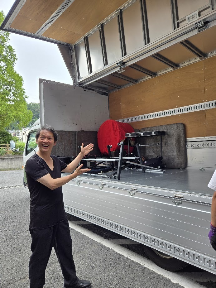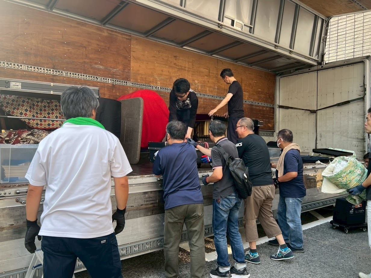 打楽器をトラックへ積み込みます!